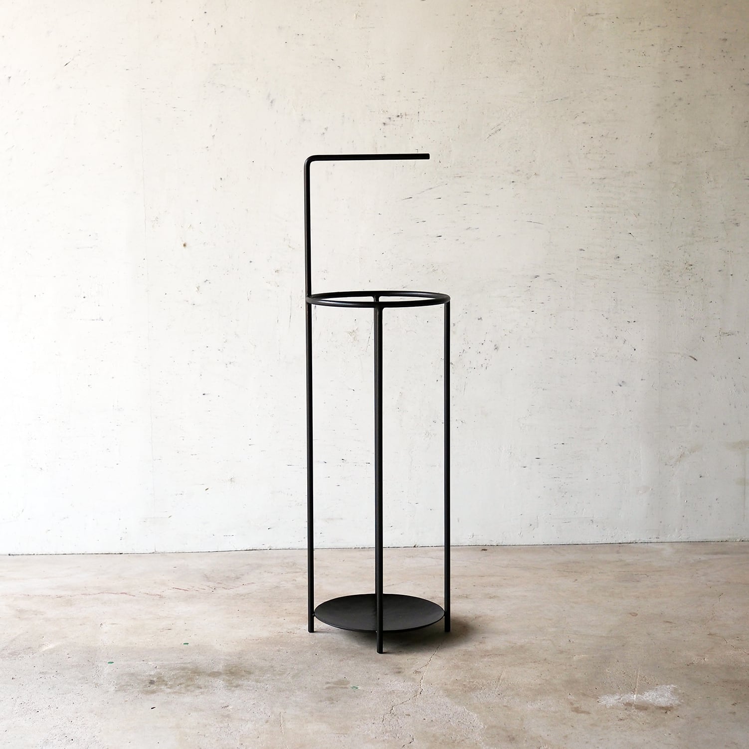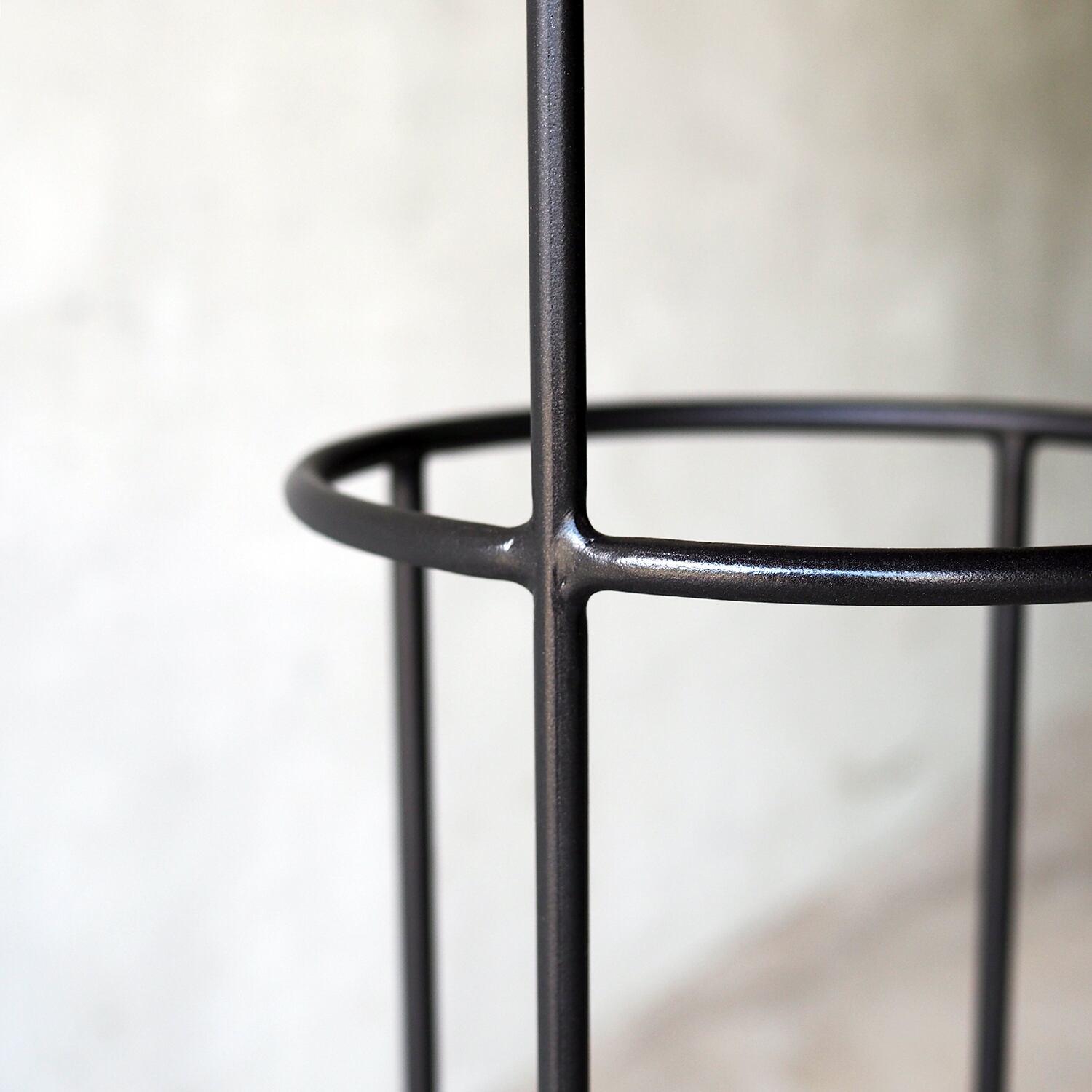 シンプルな鉄のラインと手仕事の丸いフォルムが、玄関やエントランス空間を静かに引き締め、インテリアの一部としても映える佇まいです。