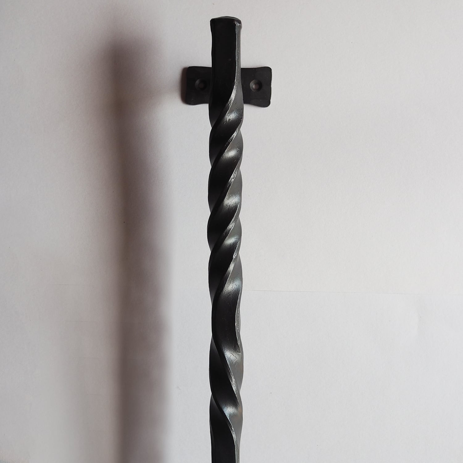無垢の角鉄(19mm角)を一本ずつ火で真っ赤になるまで熱し、金槌で叩きながら丁寧に成形したロートアイアンのアイアンバー。