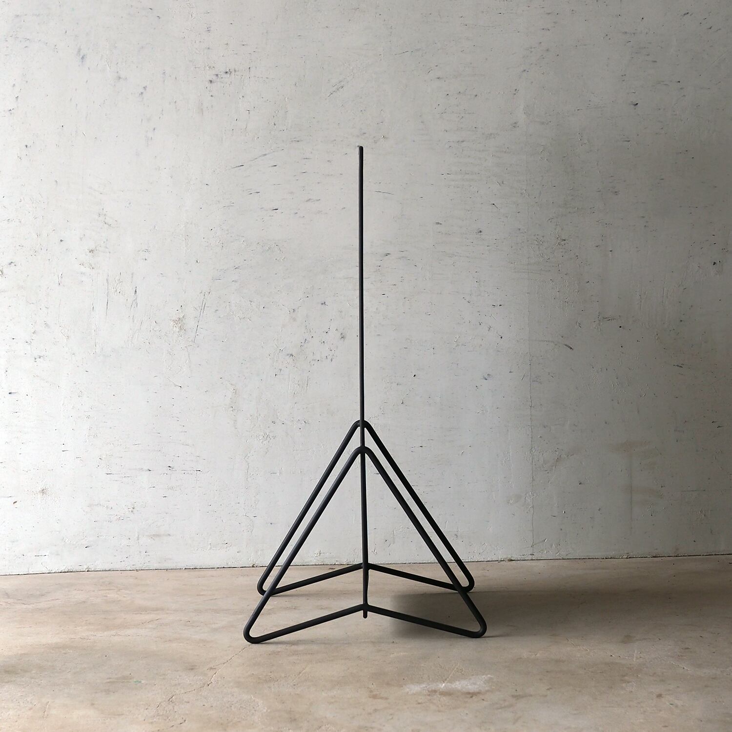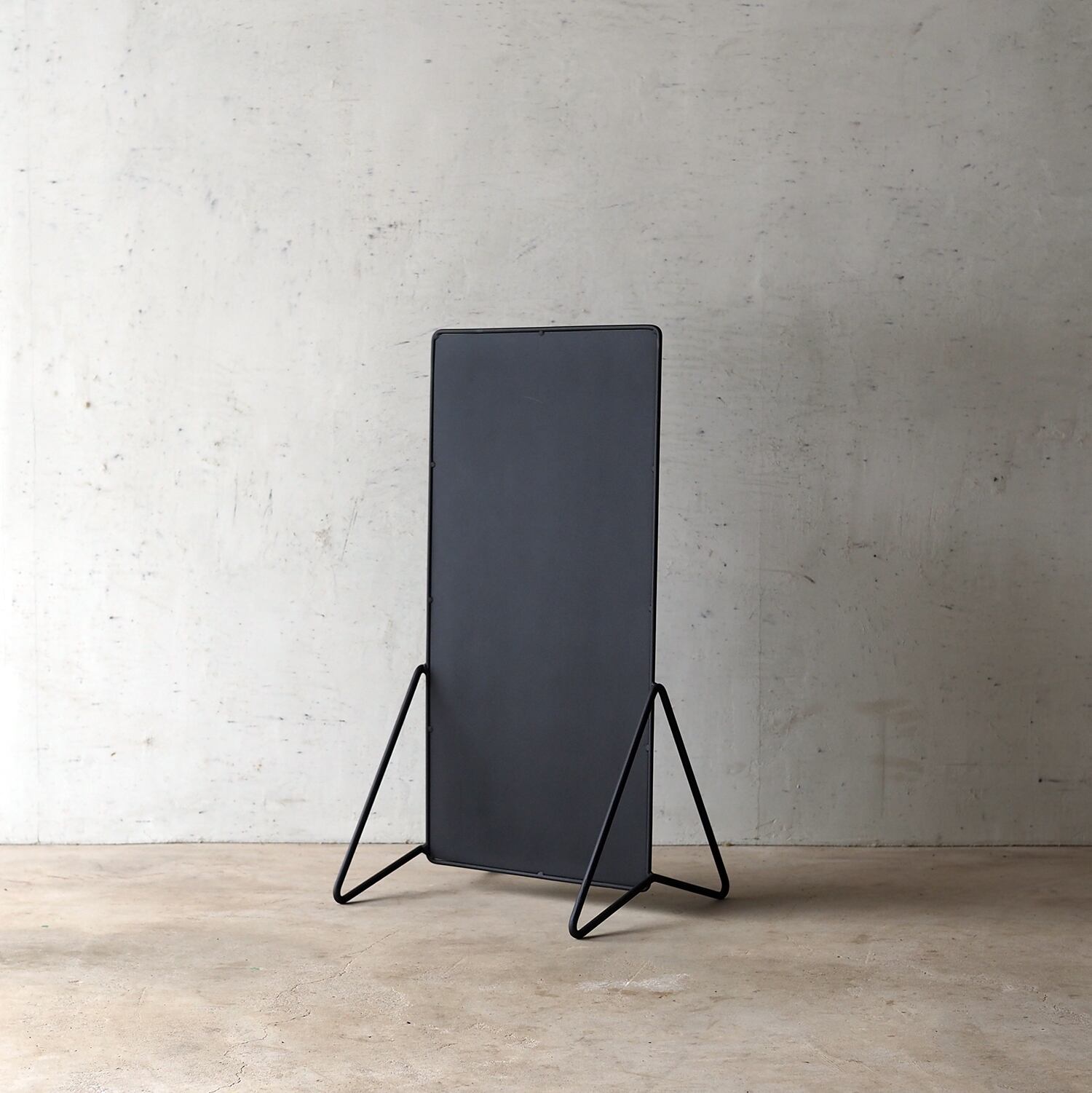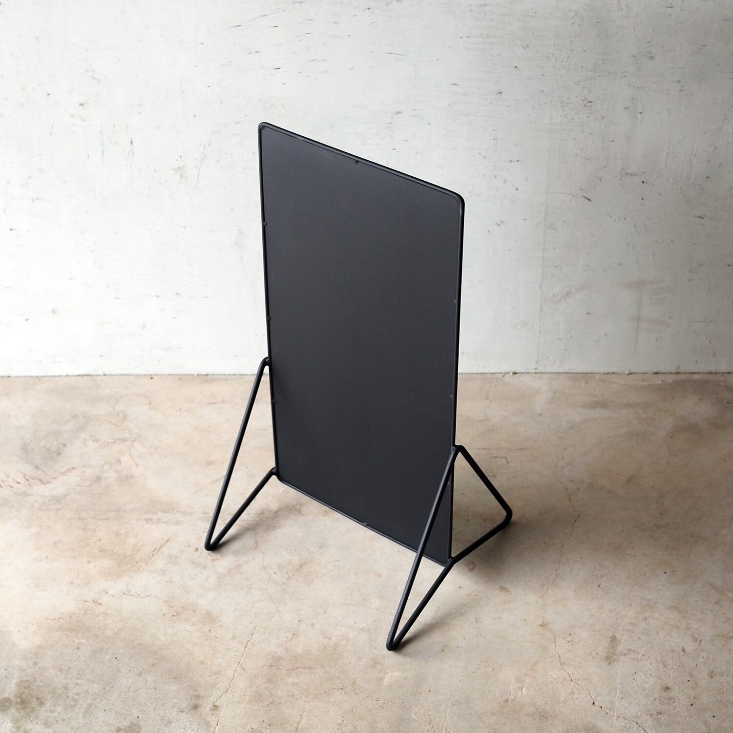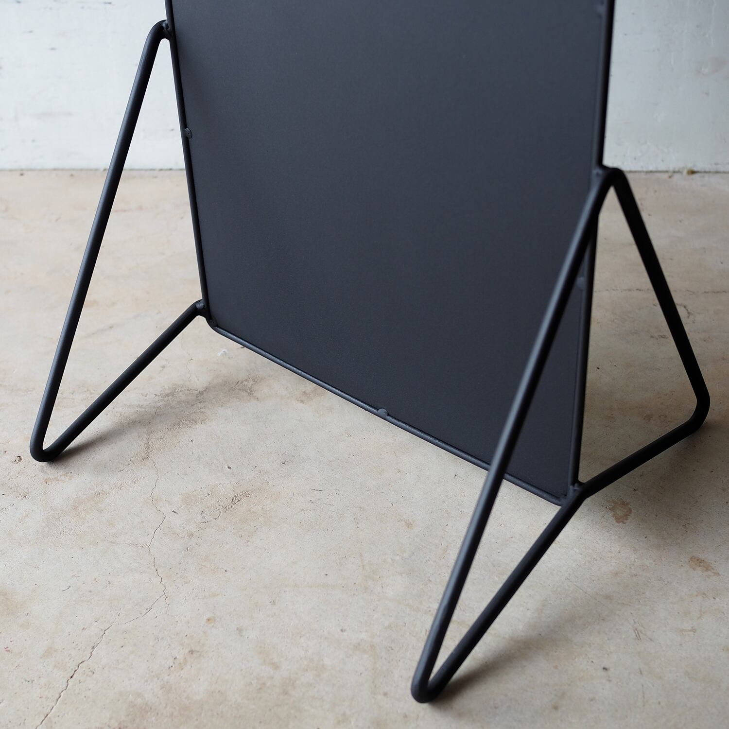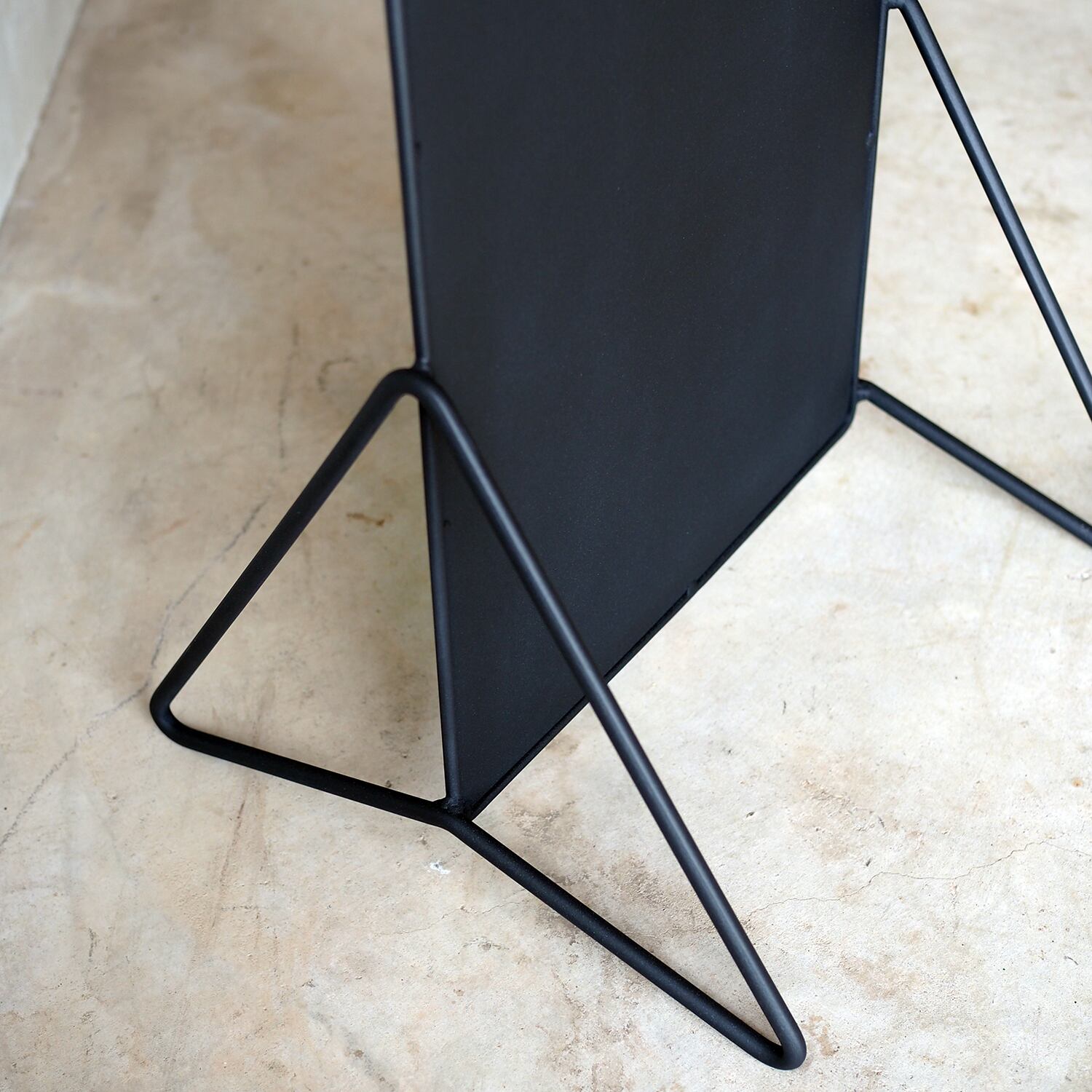 30×60cmのフラットなプレートを、線材で構成した三角フレームが静かに支えます。