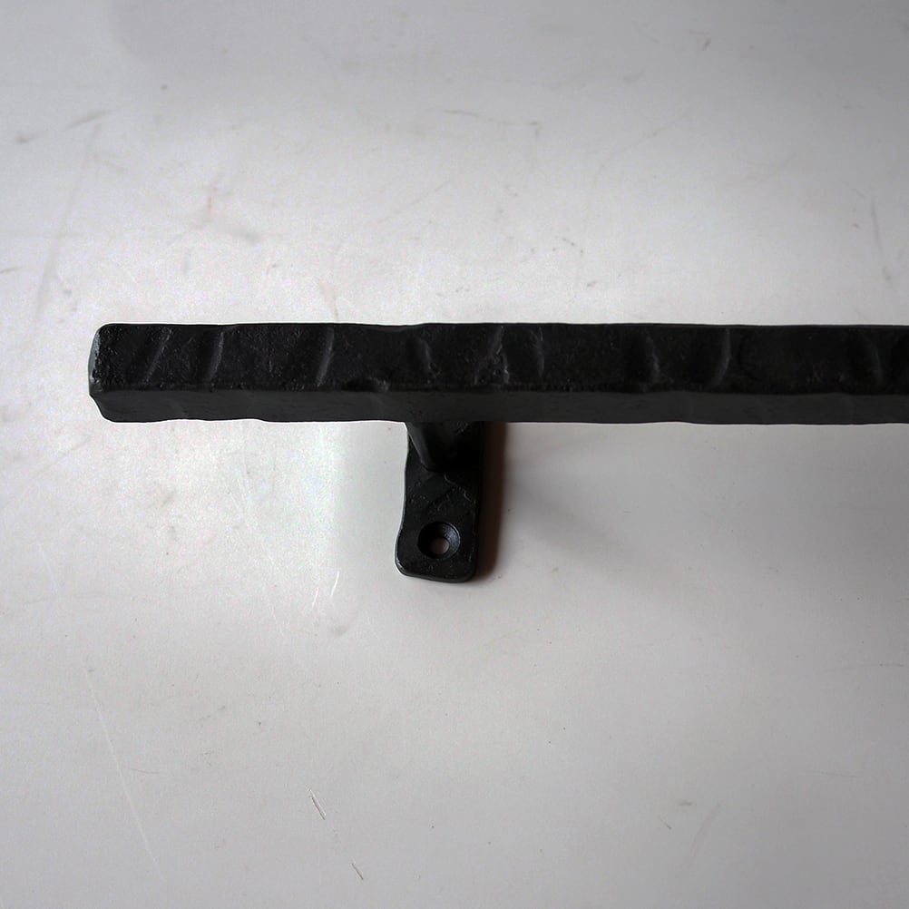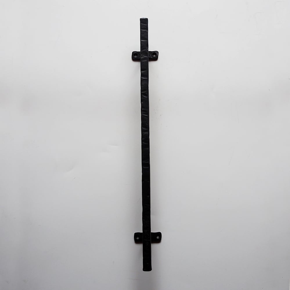 無垢の角鉄(16mm角)を一本ずつ火で熱し、ハンマーで叩きながら丁寧に成形したロートアイアンのアイアンバー。