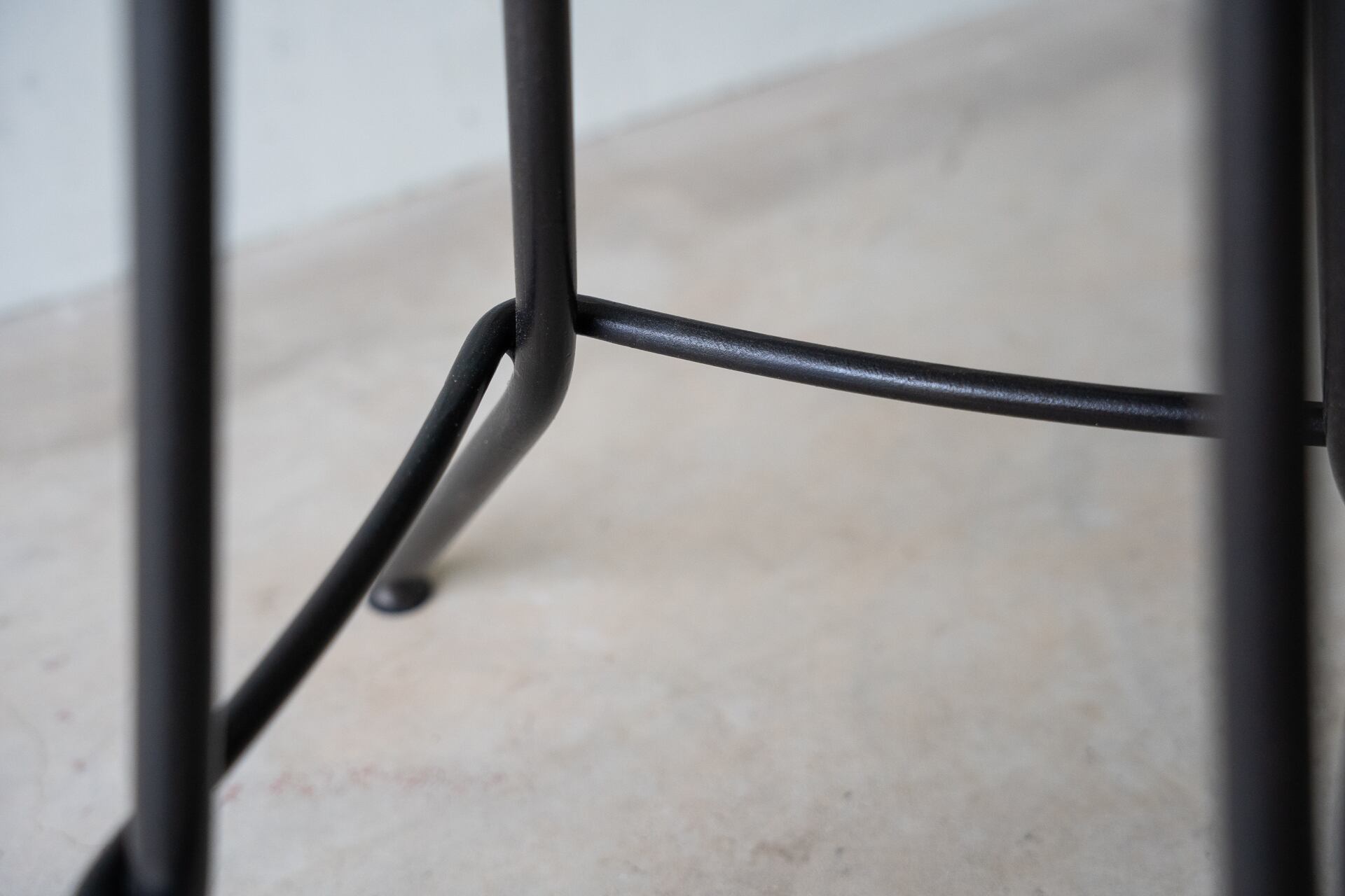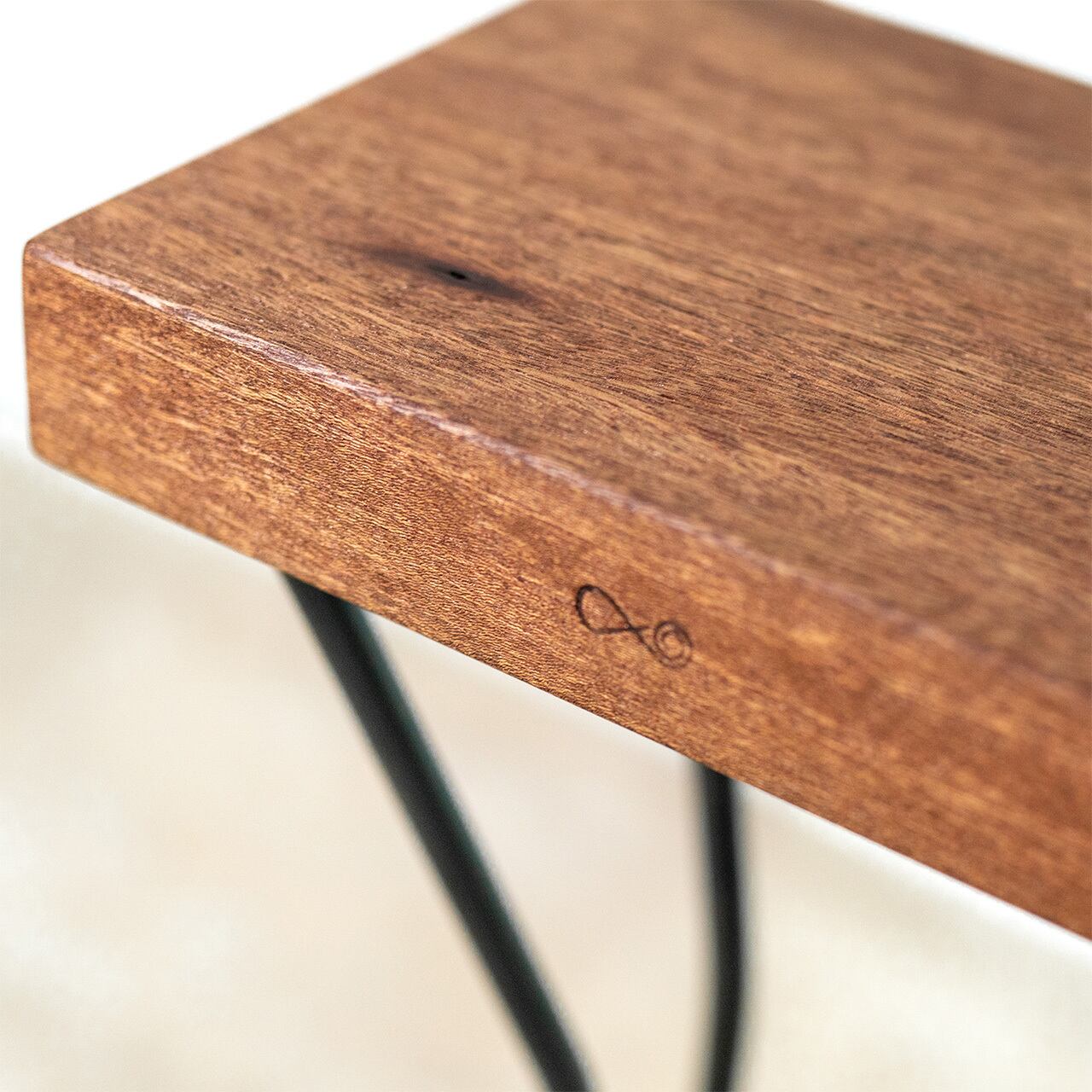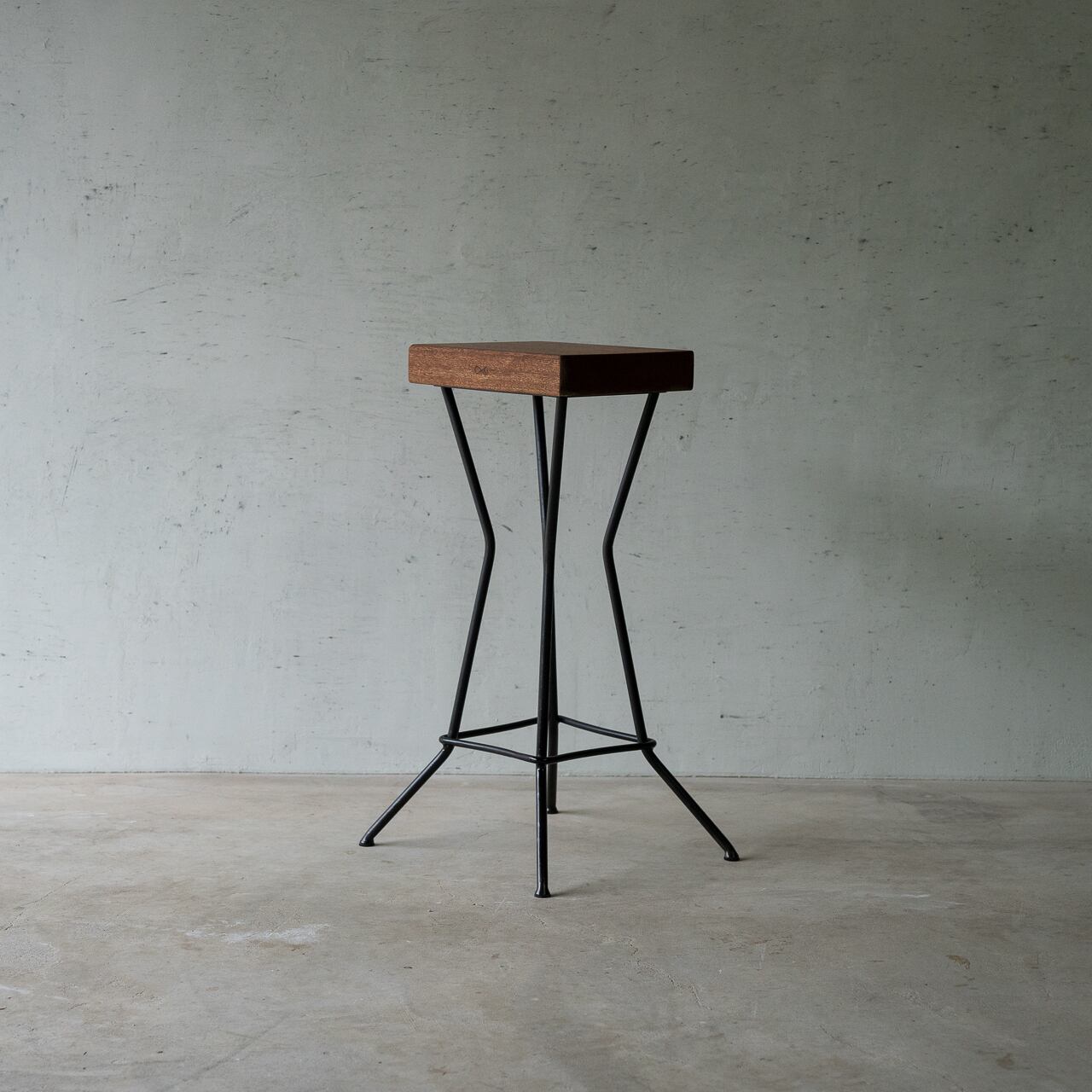 ポルトガル語で「ひも」「糸」を表す「Fio」。 4本の鉄脚にひもを巻きつけたようなカタチ。こちらは結び目のないタイプ。 《サイズ》 高さ:60cm 天板:28cm×22cm×5cm 《素材》 天板:くるみ(オイル仕上げ) 脚:アイアン(ウレタン塗装) 底:フエルト 《納期》 5営業日