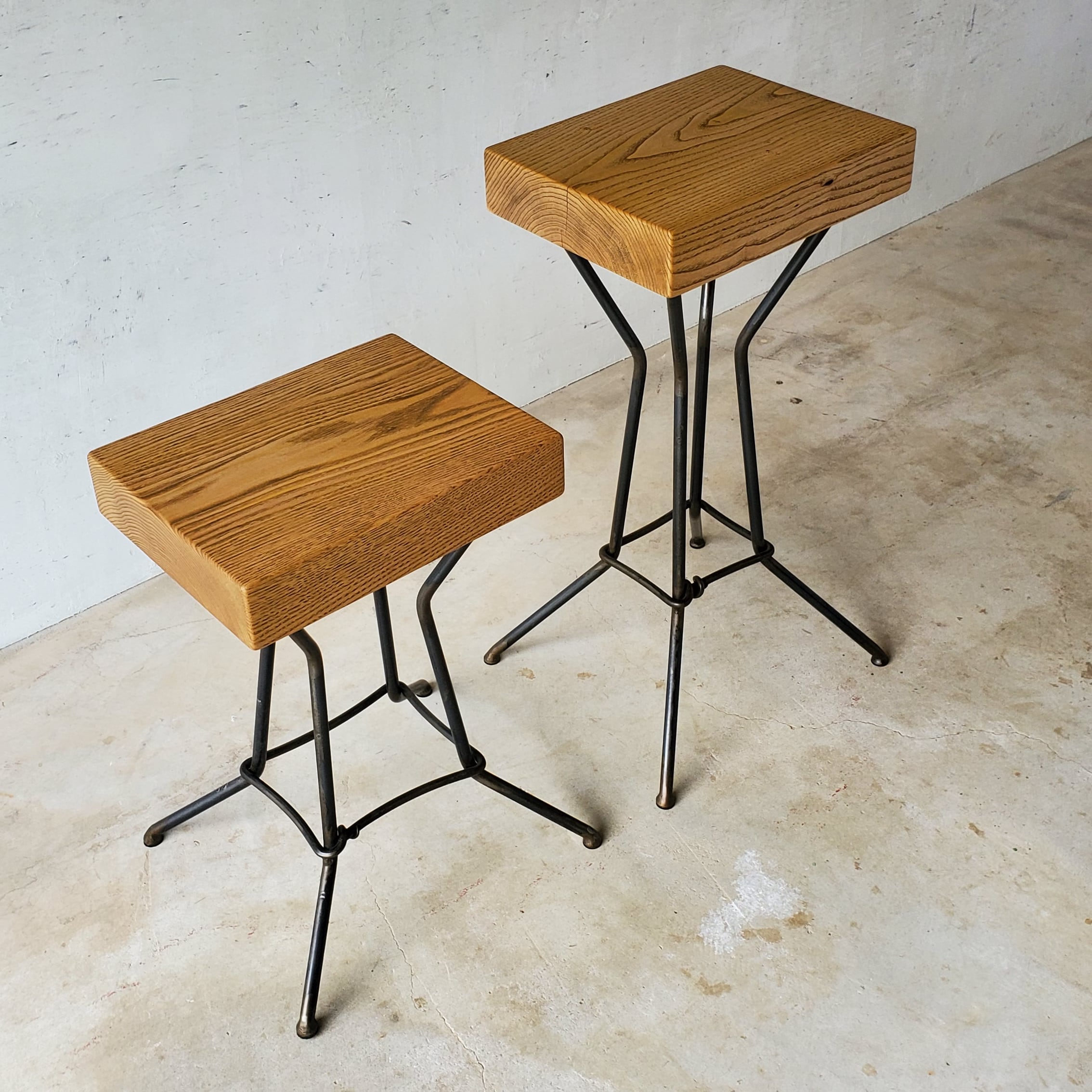 職人が一つ一つ丁寧に製作し、天板もアイアン脚もすべて手作業で自然由来のオイルで仕上げている、塗装を使わない優しいサスティナブルなスツールです。